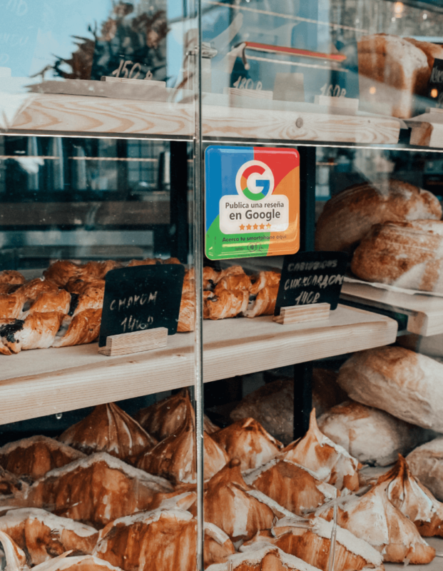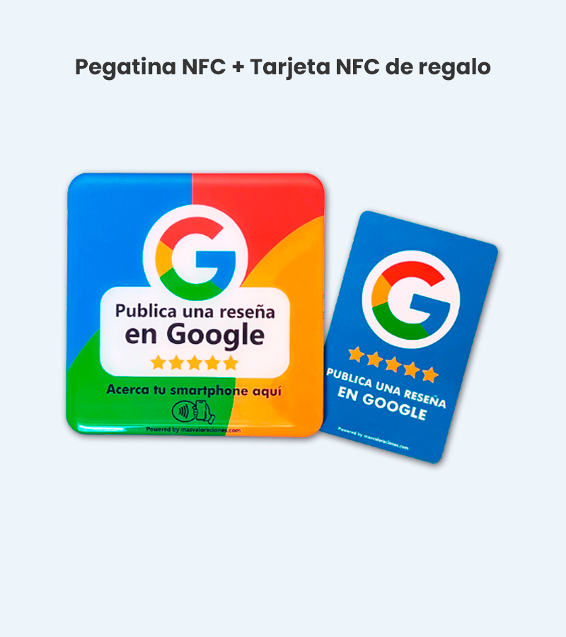 Este producto está compuesto por una pegatina adhesiva con tecnología NFC y con la pegatina se regala una tarjeta plástica con tecnología NFC integrada. Al acercar un smartphone con tecnología NFC, casi todos los teléfonos modernos, en la pantalla aparecerá una notificación para dejar una valoración en la ficha del negocio que has indicado durante el proceso de compra.