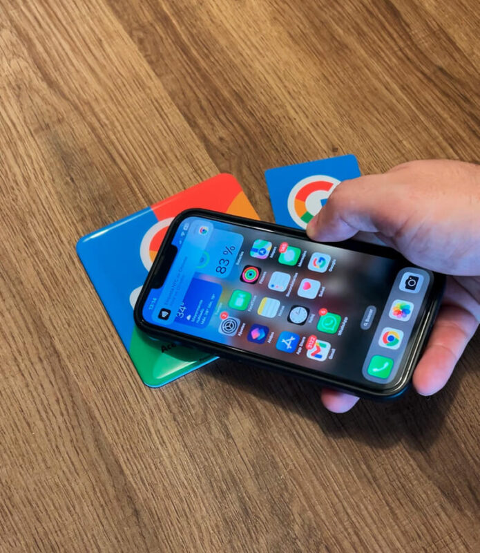 Estos productos se envían configurados para que al acercar un smartphone con NFC activo, se abra de forma directa la página de valoraciones de tu negocio. Conseguirás mejorar el número de valoraciones que recibes fácilmente.